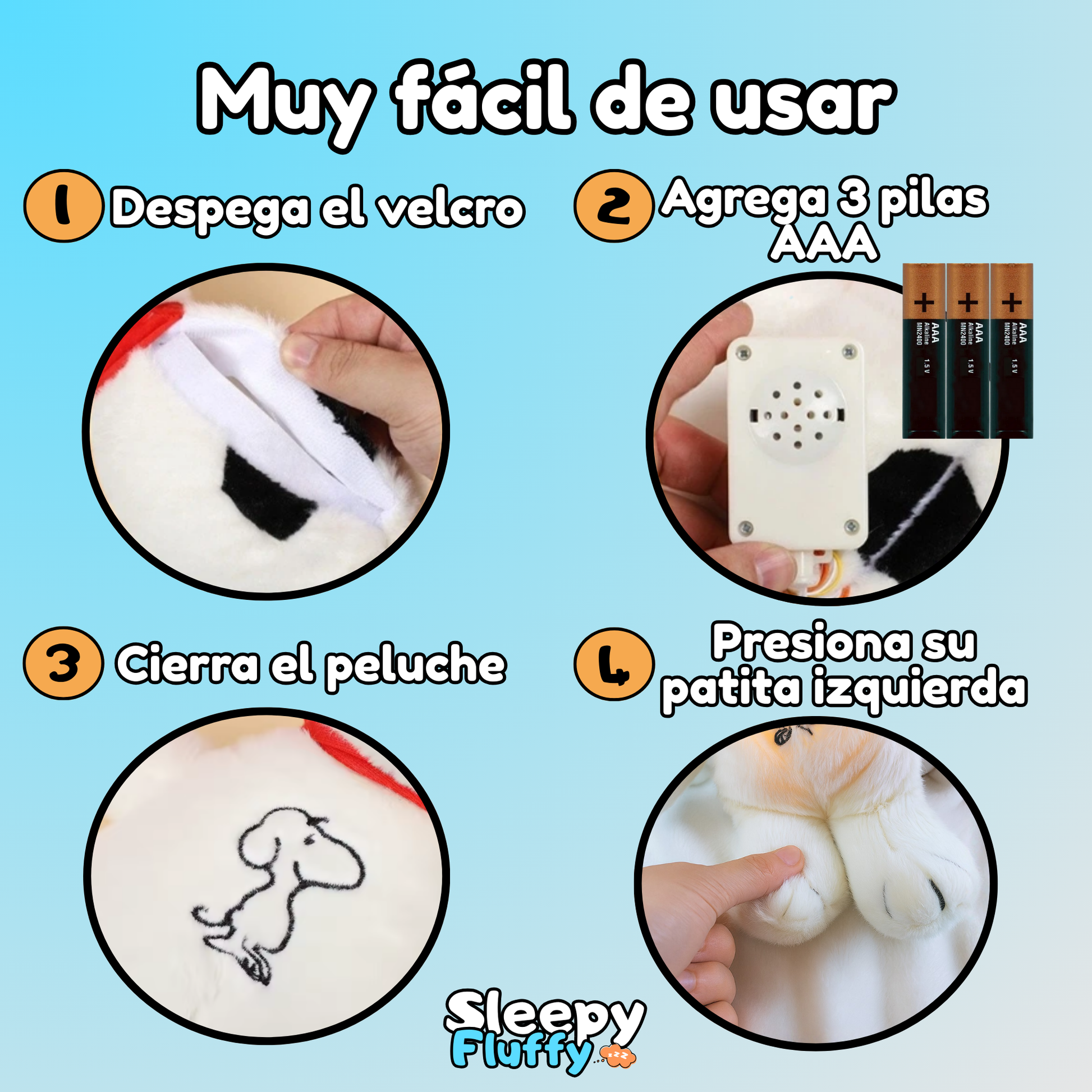 ¡Sí! El peluche funciona con 3 pilas AAA (no incluidas por seguridad durante el envío).